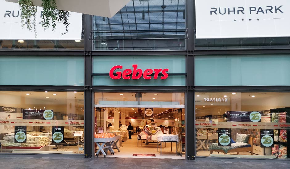 Das Einkaufszentrum Ruhrpark in Bochum ist nicht nur eines der größten in Deutschland, sondern auch das zweitälteste. Zu seiner Eröffnung im Jahr 1964 war es eine Neuheit in Deutschland. Hier finden sich heute über 130 Geschäfte unter einem Dach – vom Karstadt-Kaufhaus bis zu großen Marken. Und zu denen gehört natürlich auch die Filiale von Gebers ... die Schlafexperten, übrigens schon seit 1974! Am Ruhrschnellweg gelegen ist der Ruhrpark mit der Ausfahrt am Autobahnkreuz Bochum schnell und einfach erreichbar.