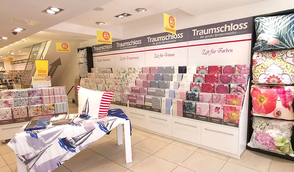 Bei Gebers sind Sie an der richtigen Adresse, wenn Sie auf der Suche nach einer neuen Matratze, Bettzeug oder Bettwäsche sind. Darüber hinaus bieten wir Ihnen eine große Auswahl an Heimtextilien und Frottierwaren. Unsere vier im eigenen Schulungszentrum ausgebildeten Mitarbeiter*innen unterstützen Sie kompetent bei der Auswahl Ihrer neuen Matratze: Sie erhalten eine individuelle Beratung in puncto Traumschloss-Matratze inklusive Lattenrost. Auf 120 qm finden Sie in unserem Matratzenstudio im 1. Obergeschoss die richtige Matratze für einen gesunden und erholsamen Schlaf. Sie können selbstverständlich in Ruhe auf den hochwertigen Matratzen unserer Bettenmarke „Traumschloss“ Probe liegen und verschiedene Kissen und Bettdecken testen. Mit unserer Gebers-Wohlfühlgarantie erhalten Sie zusätzlich eine umfassende Serviceleistung. Im 170 qm großen Erdgeschoss wartet eine große Auswahl an Bettwäsche und farblich passenden Laken auf Sie. Von Jersey- über Baumwoll- und Satinbettwäsche führen wir auch Seersucker-Qualitäten und für den Winter Biberbettwäsche.
