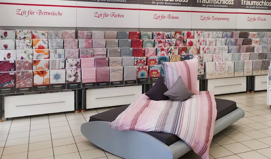 Auf gut 375 qm werden Ihnen in Minden unsere Gebers-Produkte ansprechend präsentiert. In dem großzügig ausgelegten Geschäft begrüßen Sie unsere vier Gebers-Mitarbeiter*innen, um mit Ihnen die für Ihre Schlafbedürfnisse am besten geeigneten Traumschloss-Produkte auszusuchen. Im Matratzenstudio können Sie bei einer Liegeprobe feststellen, ob eine Federkernmatratze oder eine Matratze aus Kaltschaum eher Ihren Bedürfnissen entspricht. Unsere Schlafexperten halten für Sie zudem die passenden Lattenroste und Matratzenauflagen bereit. Natürlich finden Sie in Minden auch unsere Traumschloss-Bettdecken und -Kissen, das gesamte Sortiment an Bettwäsche und Laken sowie verschiedene Heimtextilien wie Frottierwaren, Kuscheldecken und aktuelle Aktionsprodukte. Unsere Gebers-Schlafexperten erläutern Ihnen gern die verschiedenen Qualitäten der Marke Traumschloss von Basic über Comfort bis Exclusiv und Premium. Egal, für welches Material Sie sich entscheiden, mit den Bettwaren von Gebers ... die Schlafexperten erwerben Sie immer die beste Qualität!